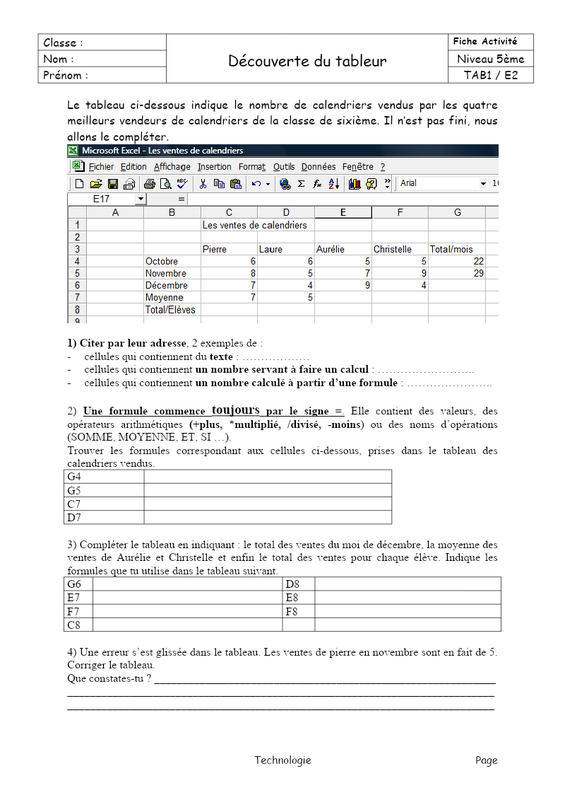 Découverte Du Tableur E2