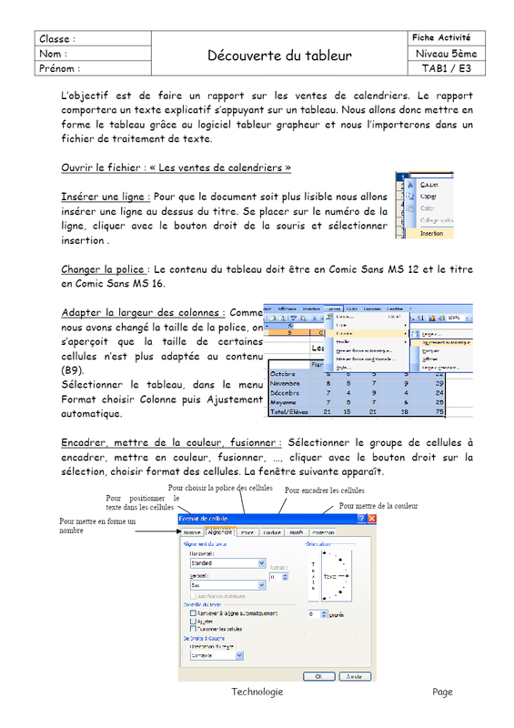 Découverte Du Tableur E3